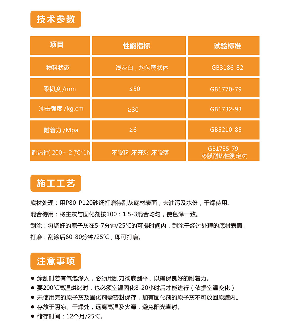 長興寶迪環保科技有限公司生產的耐高、低溫原子灰能夠經受200℃高溫考驗的原子灰具有超強的耐溫變性和很好的附著力。